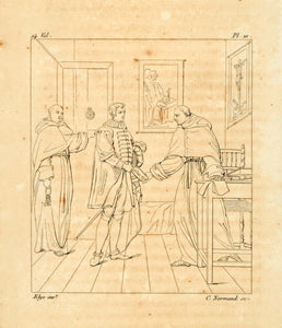 This is an original 1807 black and white copper line engraving of a stained glass painting. Engraved by Charles-Pierre-Joseph Normand (1765-1840).