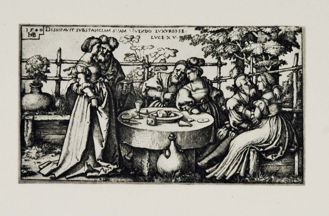 This is an original 1967 print of an engraving by Hans Sebald Beham, (1500-1550).