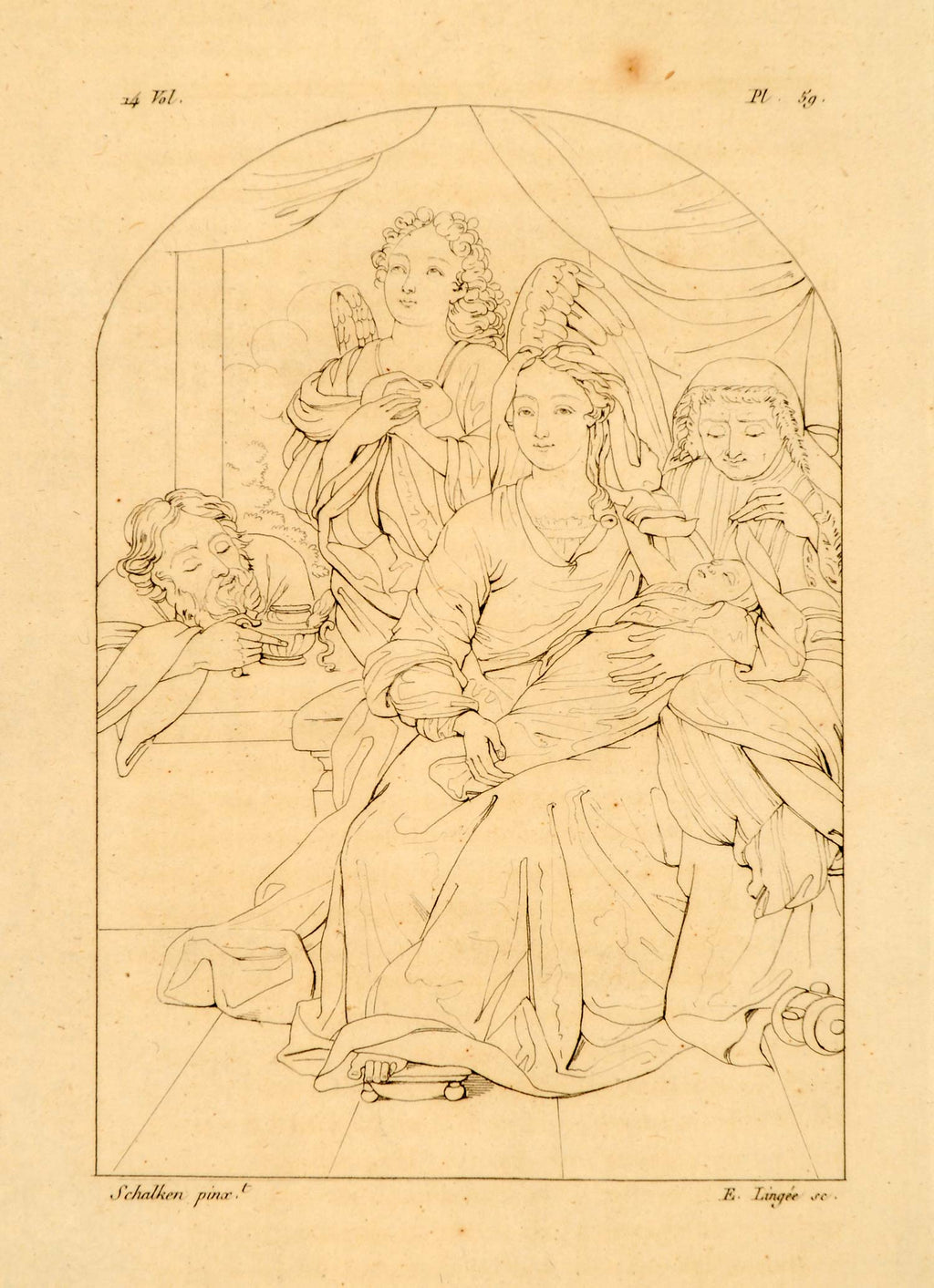 1807 Copper Engraving Holy Family Mary Joseph Jesus Angel Schalcken ADM1