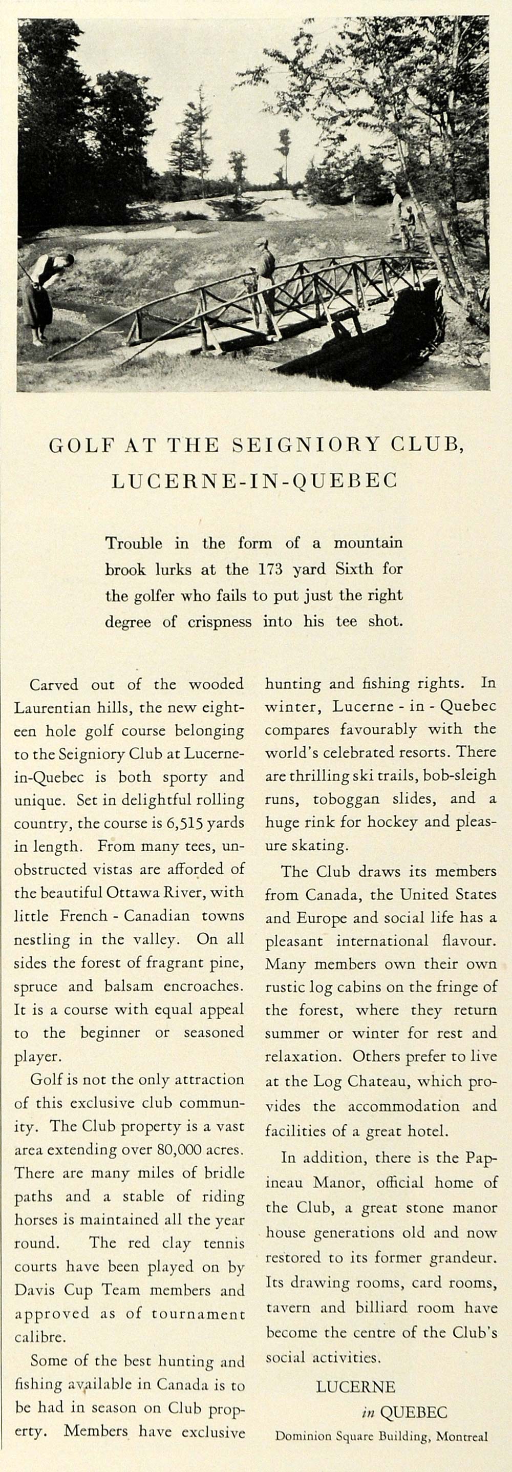 1931 Ad Lucerene Quebec Seigniory Club Golf Course Tennis Davis Cup Team COL2
