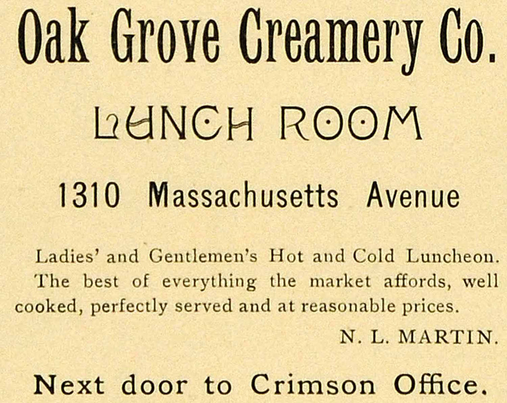 1900 Ad Oak Grove Creamery 1310 Massachusetts Ave N L Martin Harvard HVD1