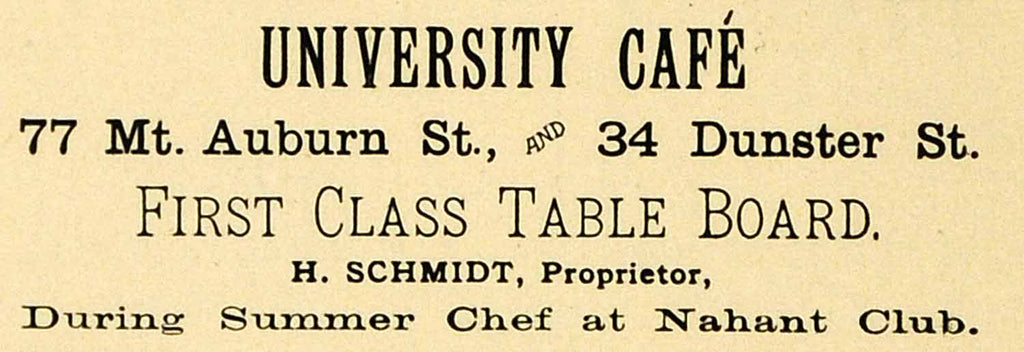 1898 Ad Harvard Lampoon University Cafe 77 Mt Aubrun 34 Dunster H Schmidt HVD1