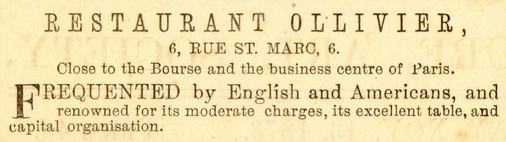 1873 Ad Restaurant Ollivier Rue St Marc Paris France Food Services Cuisine MX7