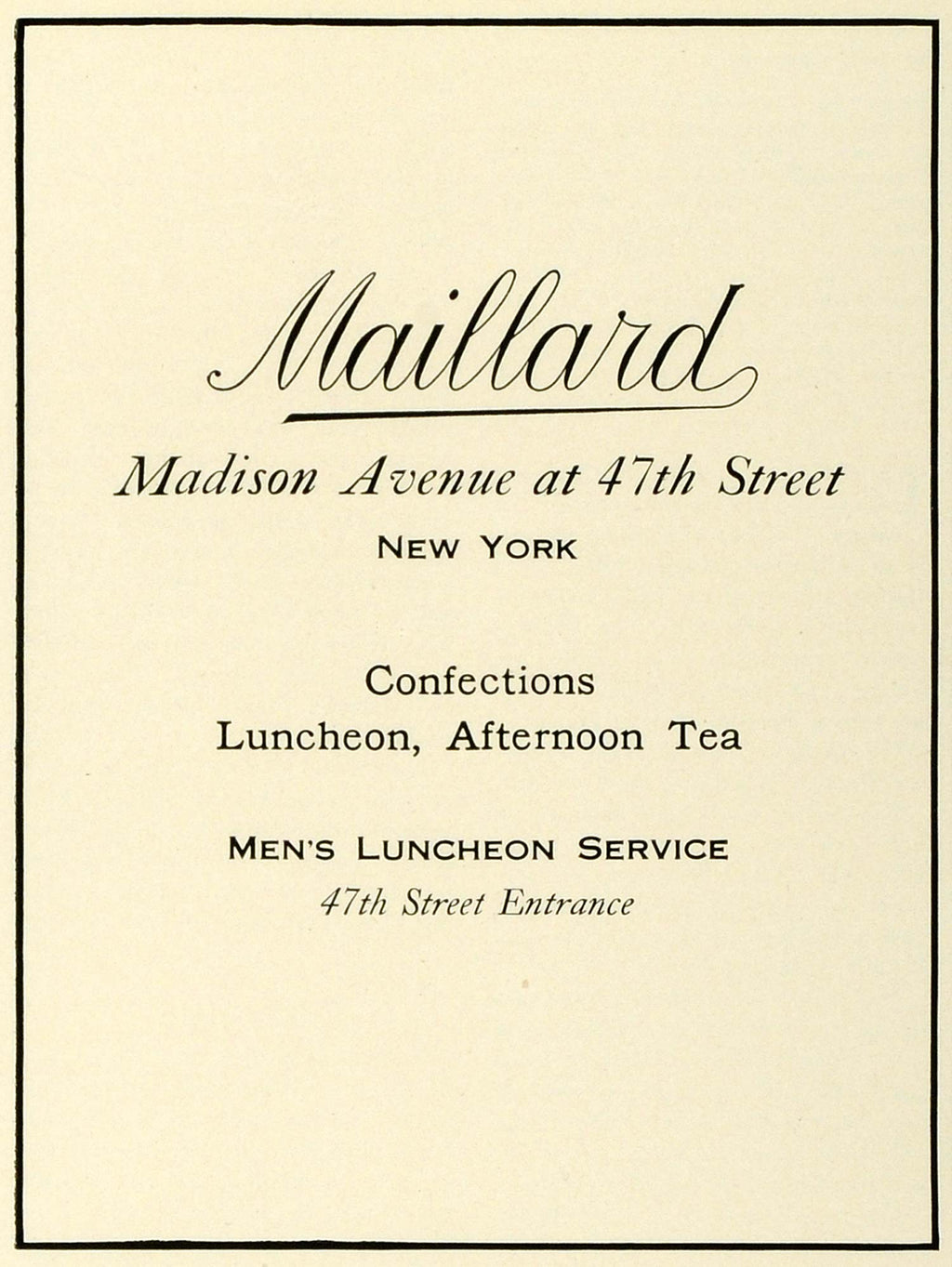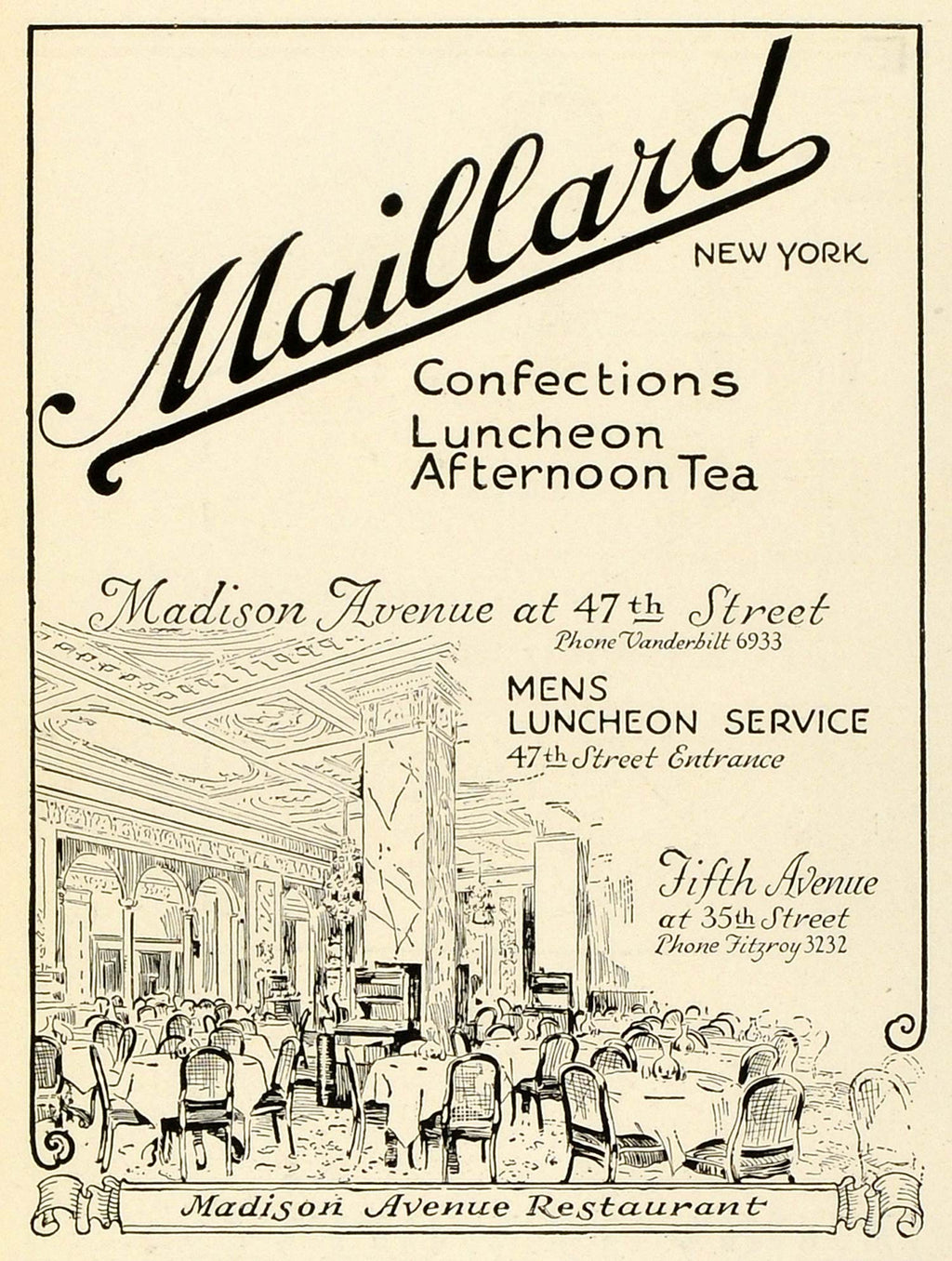 1924 Ad Maillard Madison Ave New York Confections Mens Luncheon Afternoon THM
