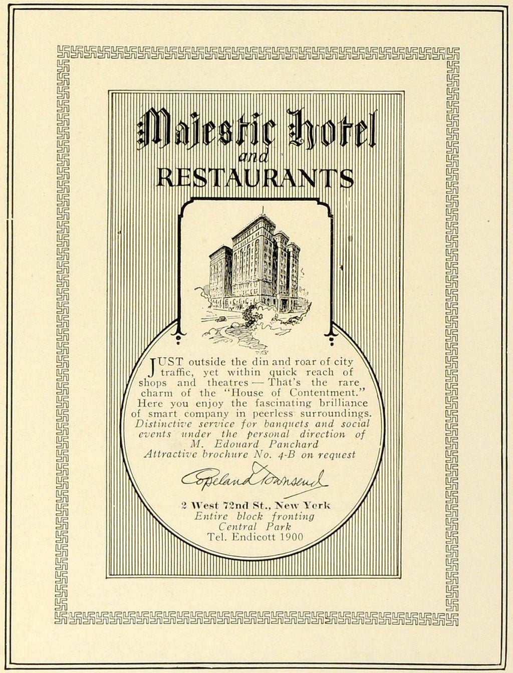 1924 Ad Majestic Hotel Resort Restaurants Edouard Panchard Central Park New THM