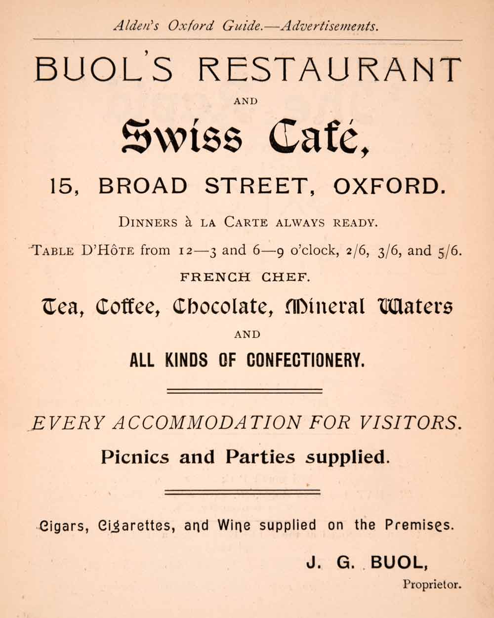 1900 Ad J Buol Restaurant Swiss Cafe 15 Broad Oxford Mineral Water Coffee XGCA4