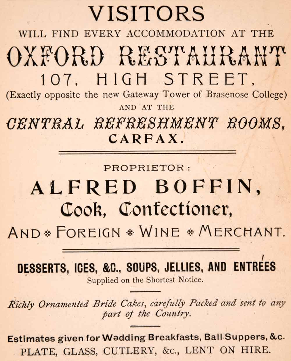 1900 Ad Oxford Restaurant 107 High Street Carfax Alfred Boffin Brasnose XGCA4