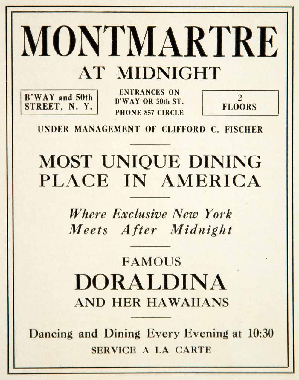1917 Ad Montmartre Midnight Restaurant New York Doraldina Dance Dine YOW1