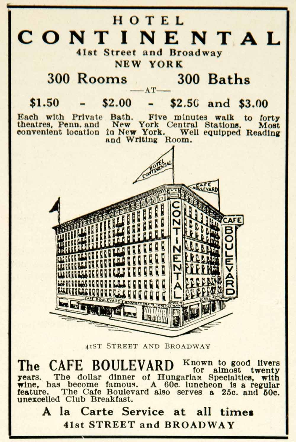 1914 Ad Hotel Continental 41st Street Broadway NYC Cafe Boulevard Building YTT2