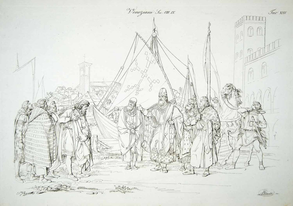 1834 Copper Engraving Doge Venice Costume Dress Advisors Court Ship Guards ILC2