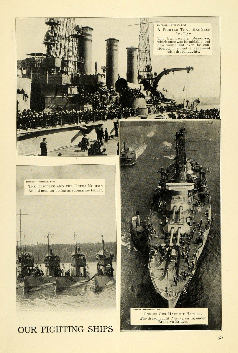 This is an original 1915 World War I halftone print of battleships and dreadnoughts, specially featuring the