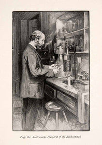 This is an original 1902 black and white halftone print of Dr. Kohlrausch who is the president of the Reichsanstalt.