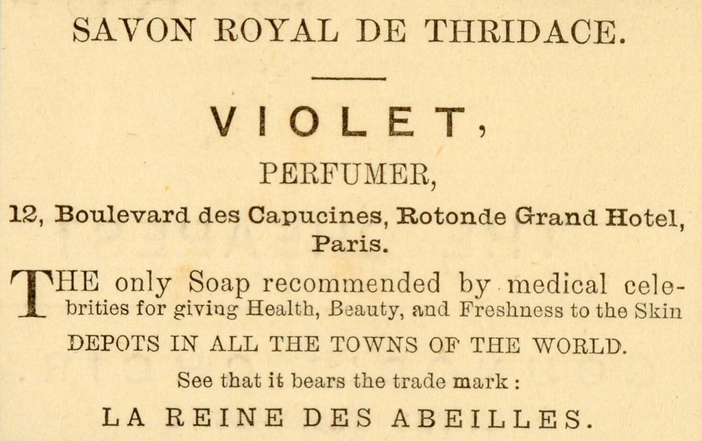1873 Ad Savon Royal De Thridace Violet Paris La Reine Des Abeilles Soap MX7
