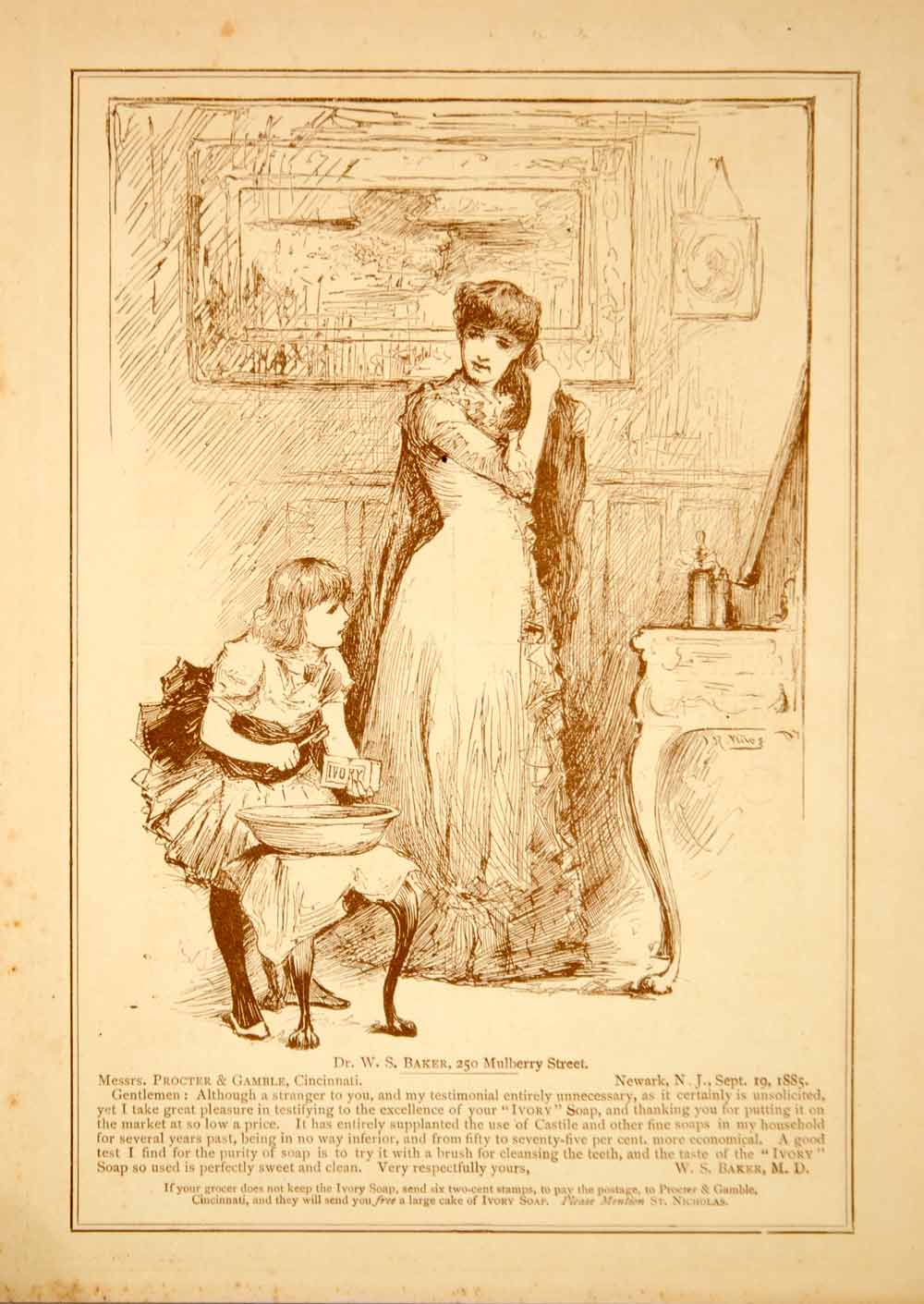 1886 Ad Antique Ivory Soap Victorian Dr. W. S. Baker 250 Mulberry St Newark YSN1