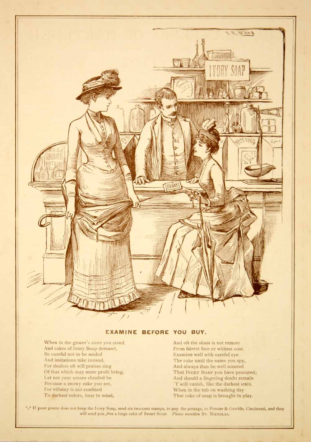 1886 Ad Antique Ivory Soap Cake Victorian Ladies Grocery Store Counter Shop YSN1