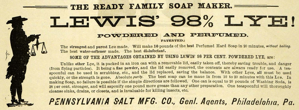 1889 Ad Lewis Lye Pennsylvania Salt Soap Cleaner Health - ORIGINAL GROC2
