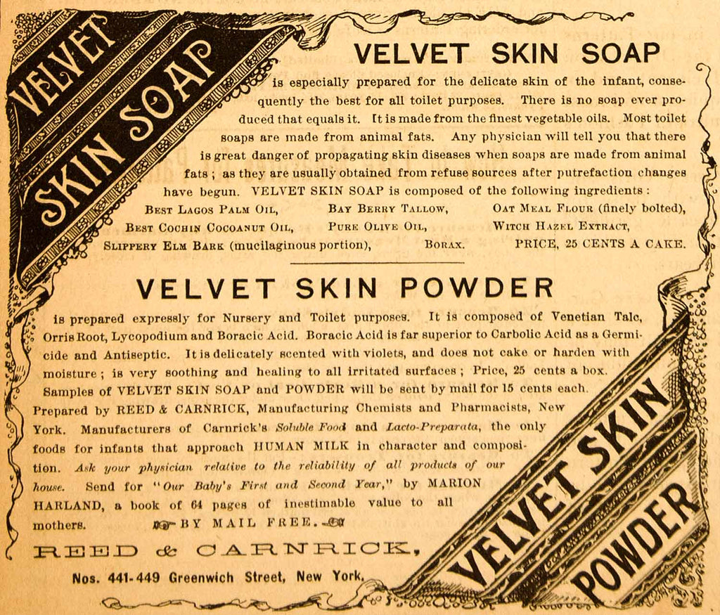 1890 Ad Velvet Skin Powder Soap Reed Carnrick Cosmetic Health Beauty YDL7