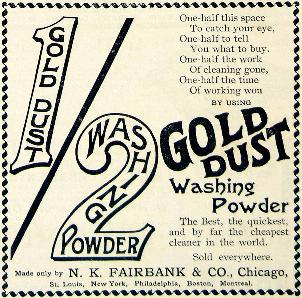1893 Ad Gold Dust Washing Powder NK Fairbank 1/2 Household Cleaner Chicago CCG1