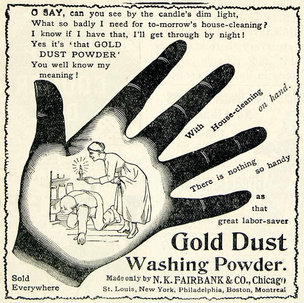 1893 Ad Gold Dust Washing Powder NK Fairbank Candle Hand Palm House CCG1