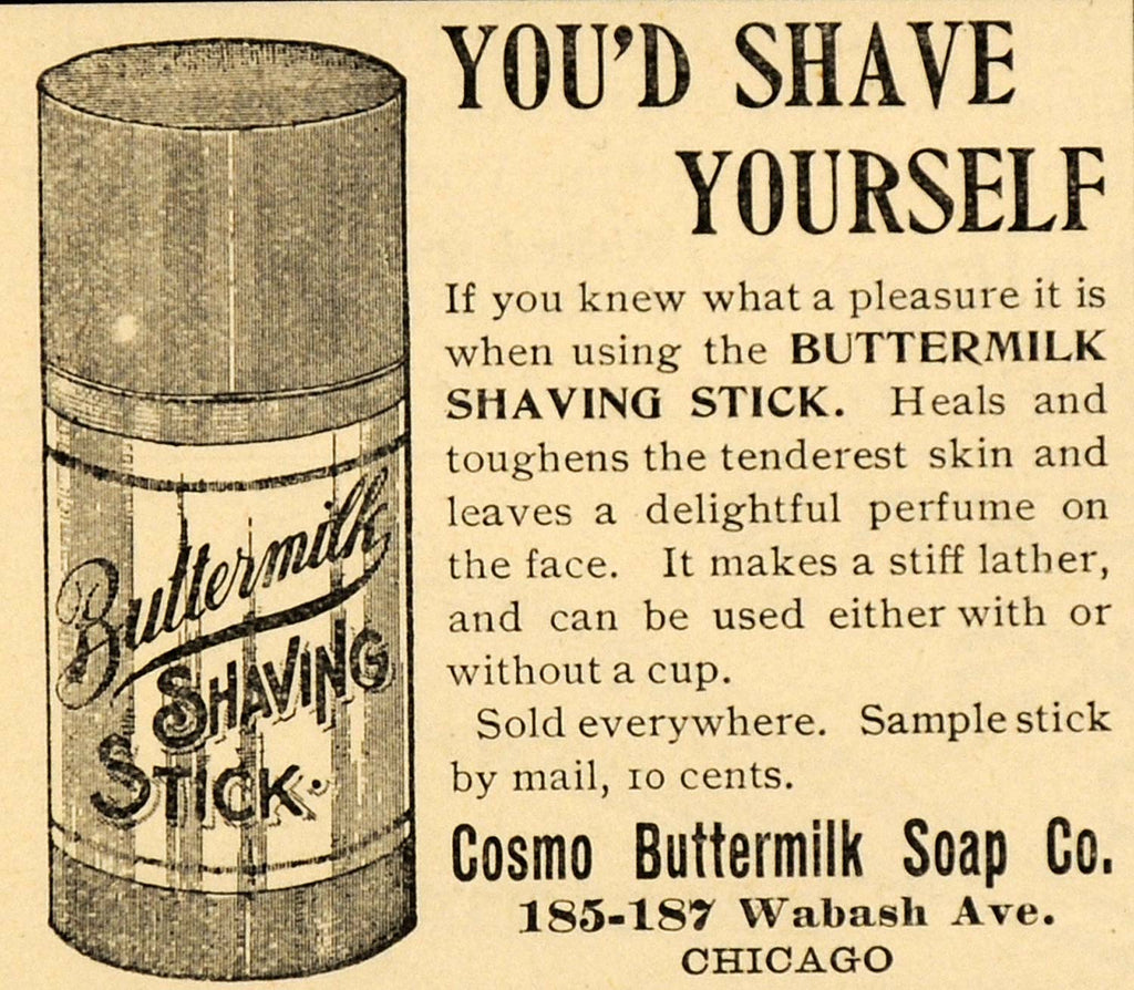1893 Ad Cosmo Buttermilk Soap Co. Shaving Stick Product - ORIGINAL LHJ4