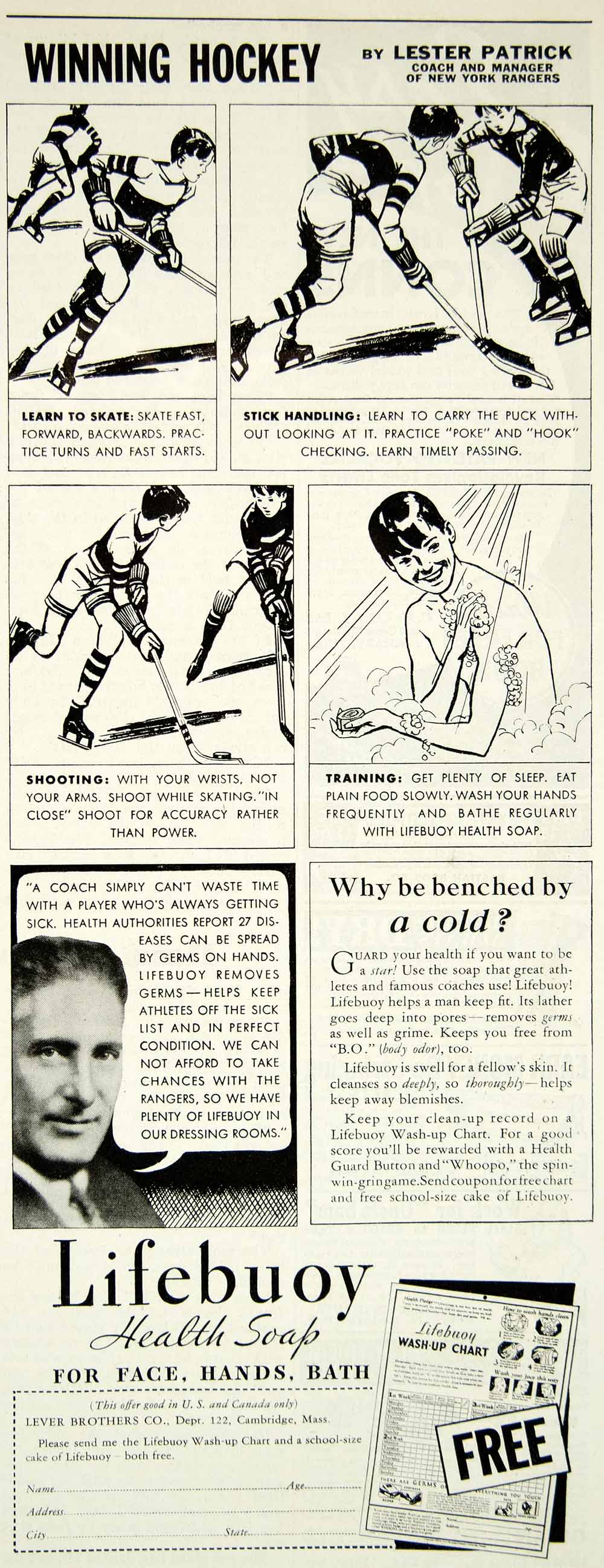 1936 Ad Lifebuoy Soap Lester Patrick Hockey Coach Lever Brothers Cambridge YAB2