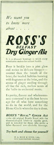 1915 Ad Vintage Ross's Belfast Dry Ginger Ale Soda Beverage W. A. Ross & Sons