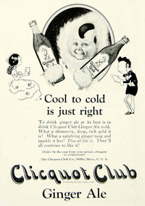 1924 Ad Clicquot Club Ginger Ale Beverage Soda Eskimo Child Grocery Millis YTS2