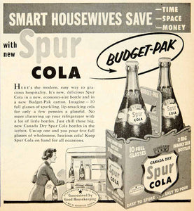 This is an original 1953 black and white print ad for Canada Dry Spur Cola in budget-pak cartons.