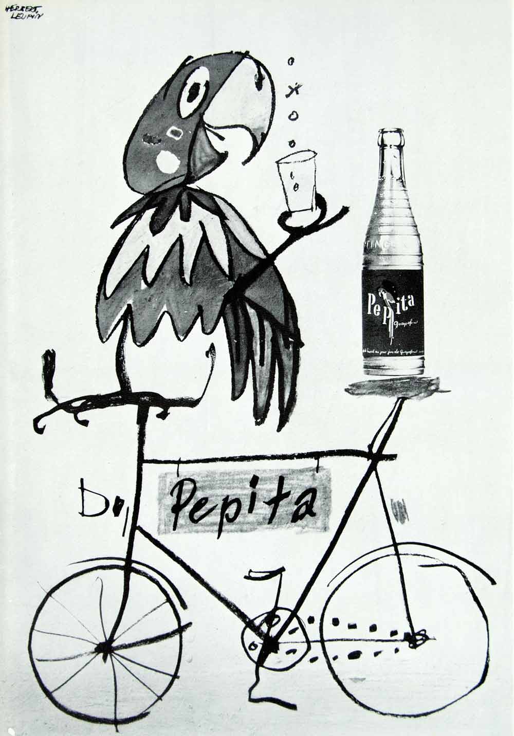 1958 Print Herbert Leupin Advertising Poster Pepita Grapefruit Soda Bike VENA1