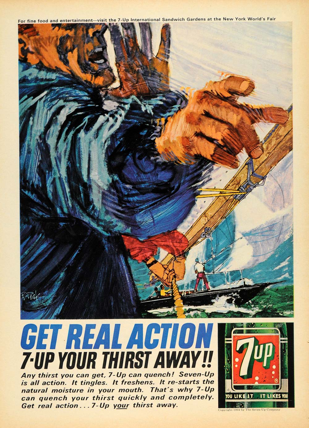 1964 Ad 7UP Soda Pop Sailboat Sailing B. Peak Art - ORIGINAL ADVERTISING TM6
