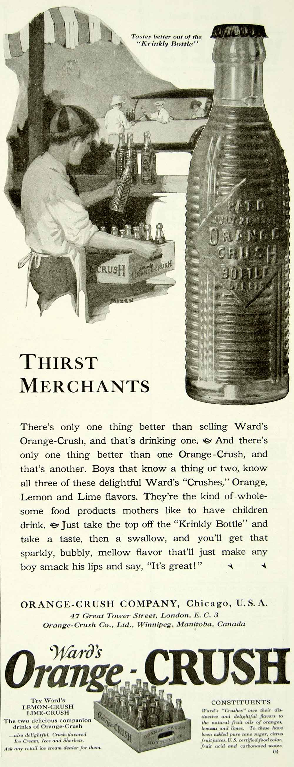 1923 Ad Wards Orange Crush Soft Drink Soda Pop Beverage Food Krinkly Bottle YYC4