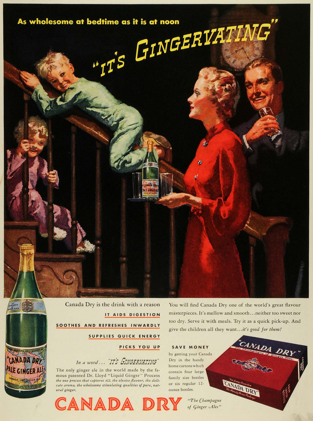 1937 Ad Canada Dry Ginger Ale Pale Champagne Family Art - ORIGINAL LF3