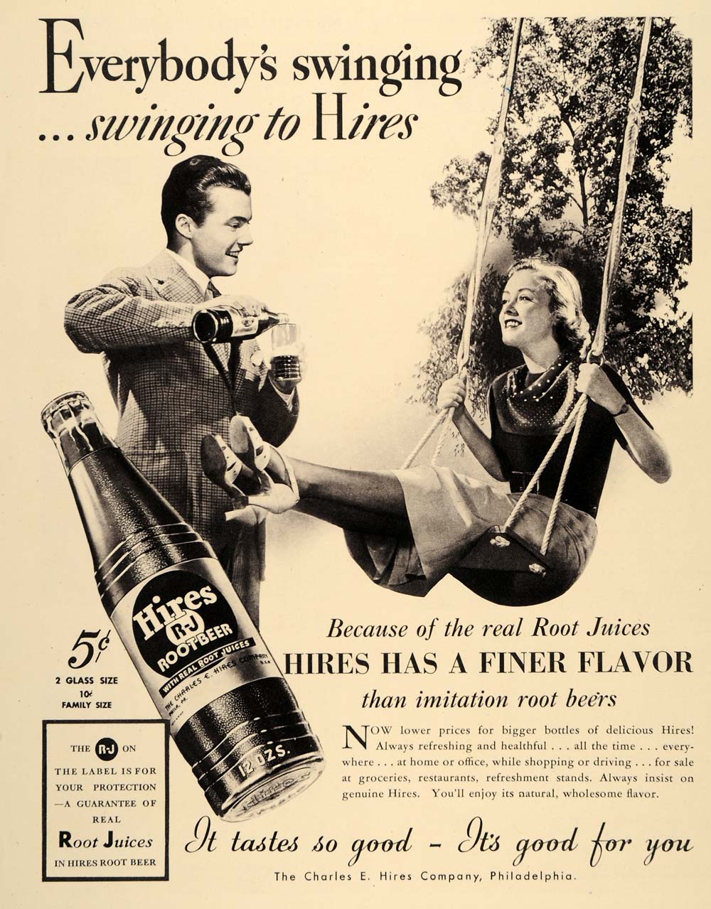 1937 Ad Hires R-J Root Beer Swing Charles Hire Juices - ORIGINAL ADVERTISING LF3