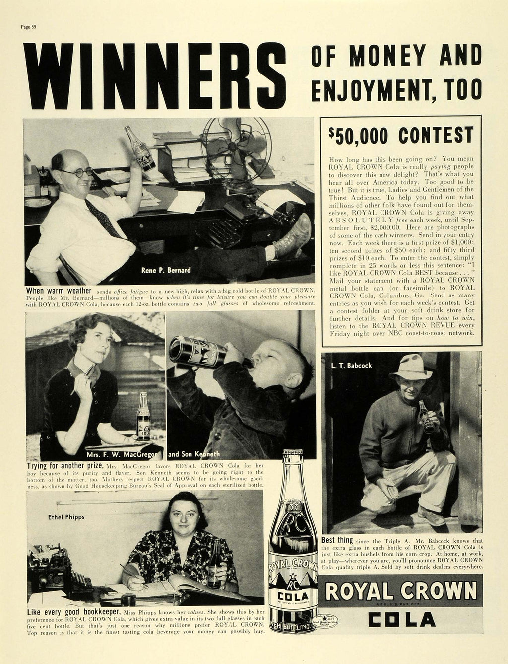 1938 Ad Royal Crown Cola Soda Pop Bottle Contest Winners Ethel Phipps LT LF5