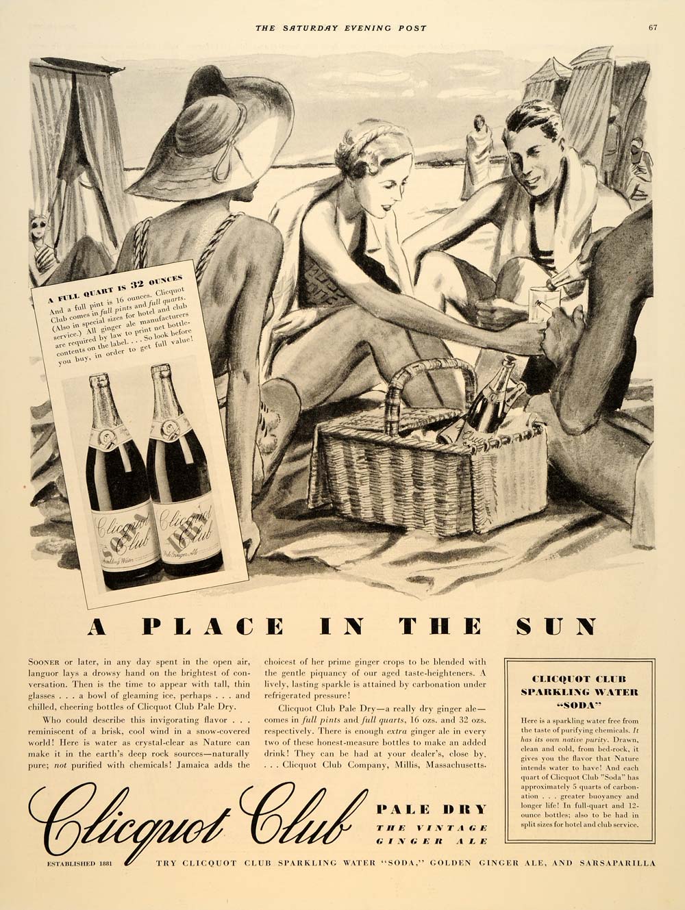 1935 Ad Clicquot Club Pale Dry Ginger Ale Summer Beach - ORIGINAL SEP4