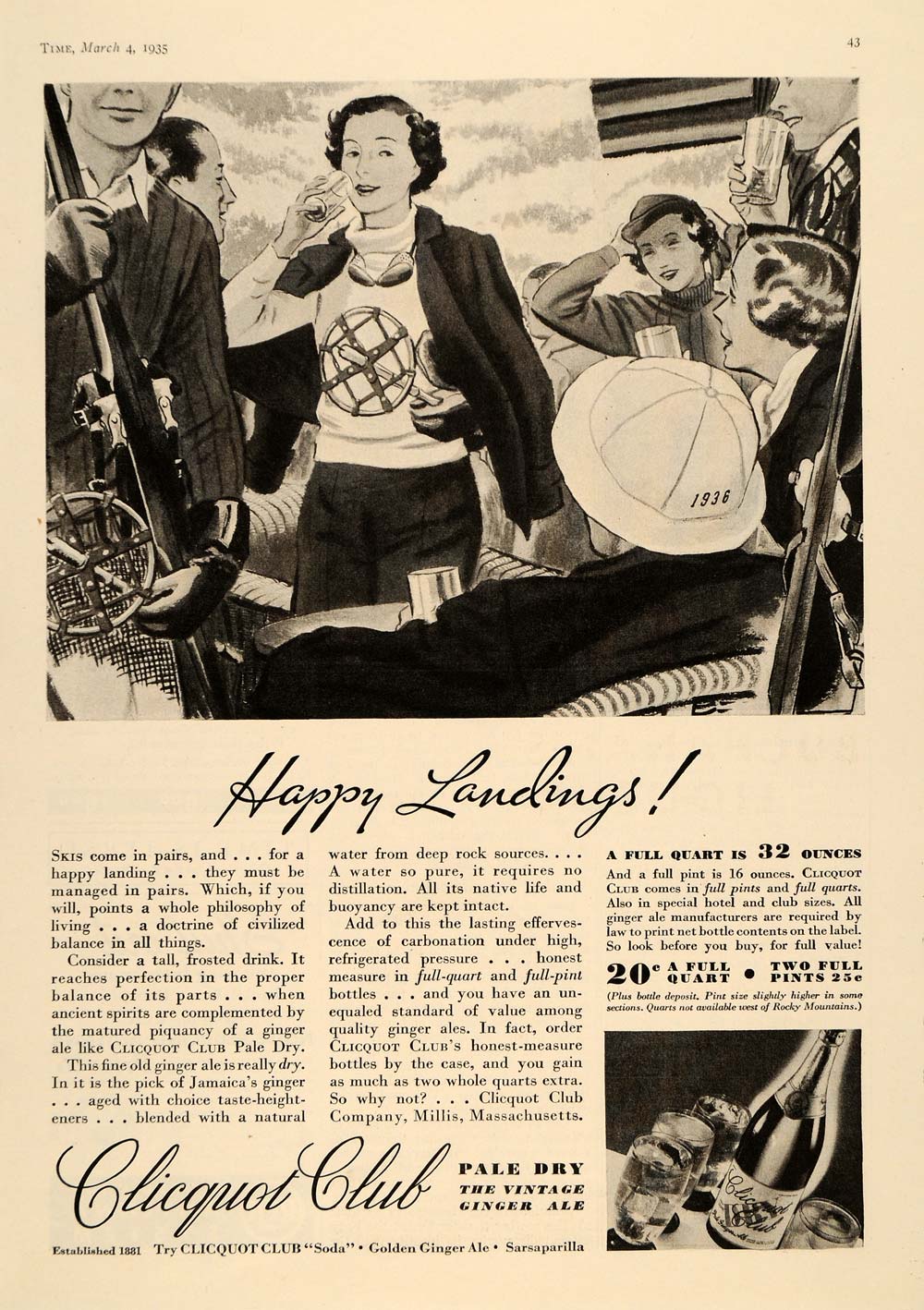 1935 Ad Clicquot Club Ginger Ale Downhill Snow Skiing - ORIGINAL ADVERTISING TM7