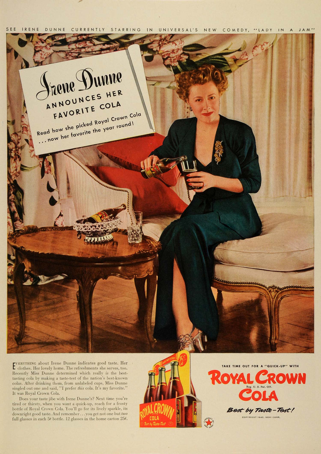 1942 Ad Royal Crown Cola Soda Pop Bottle Film Actress Singer Irene Dunne LF4