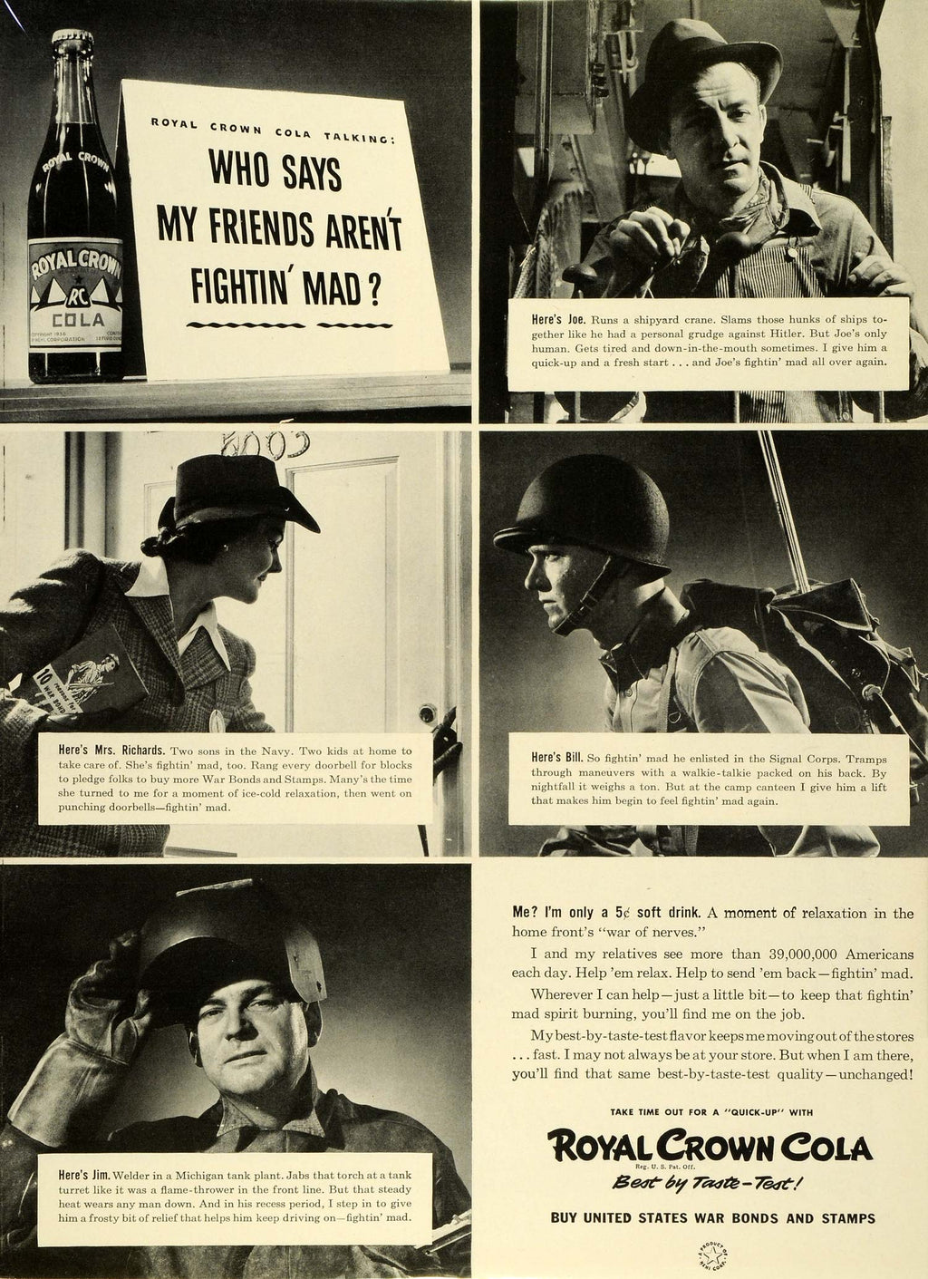 1942 Ad Royal Crown Cola World War II Grudge Fightin' Mad Soda Drink LF4