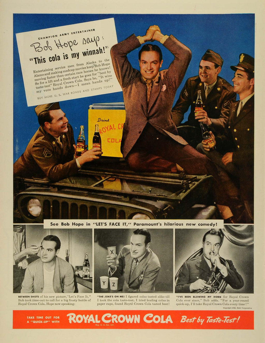 1943 Ad Nehi Corp Royal Crown Cola Comedian Bob Hope Serviceman Military LF4