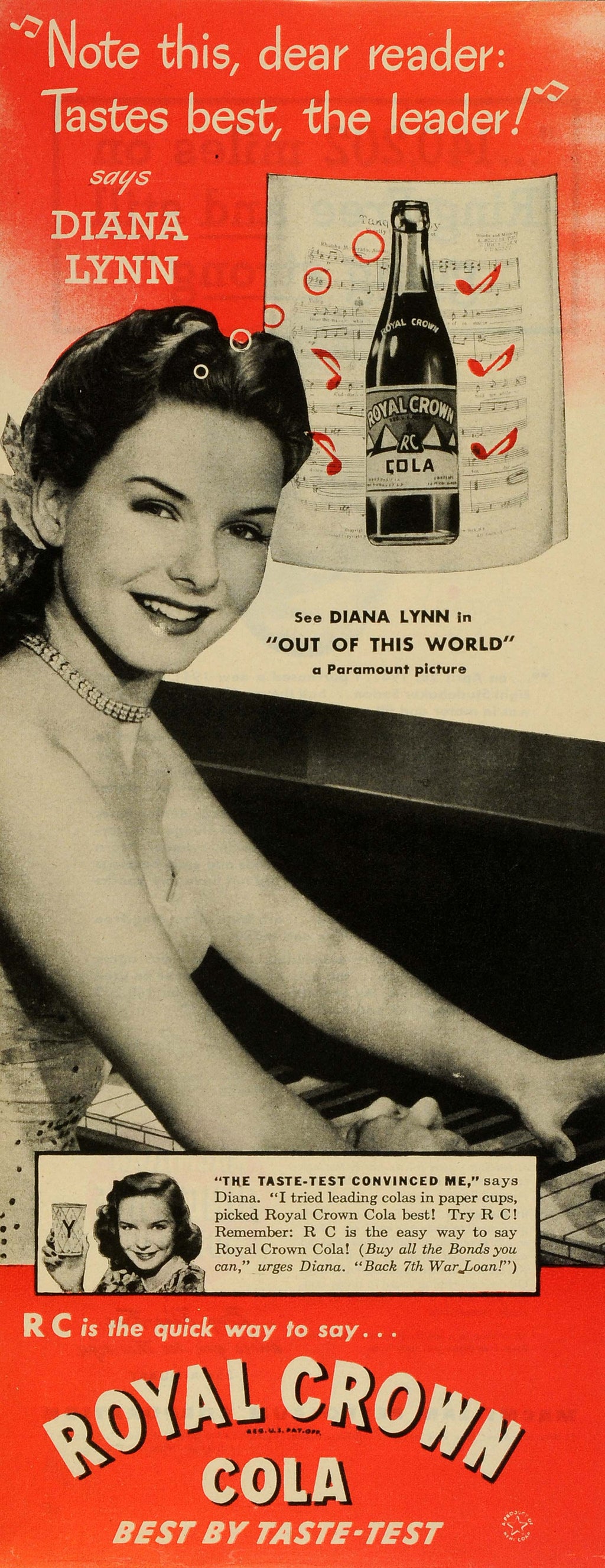1945 Ad Royal Crown Cola R C Soda Pop Diana Lynn Actress Piano Music LF5