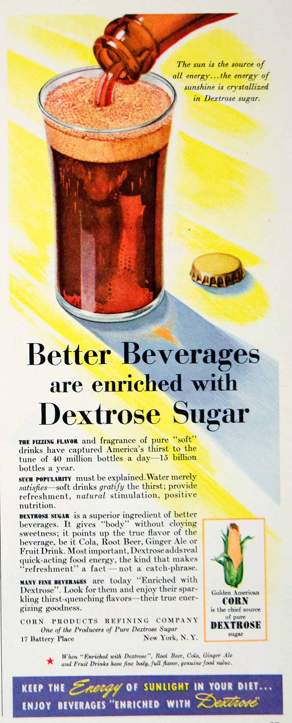 1942 Ad Corn Dextrose Sugar Soft Drink Soda Pop Beverage Diet Humorous Food YLK1