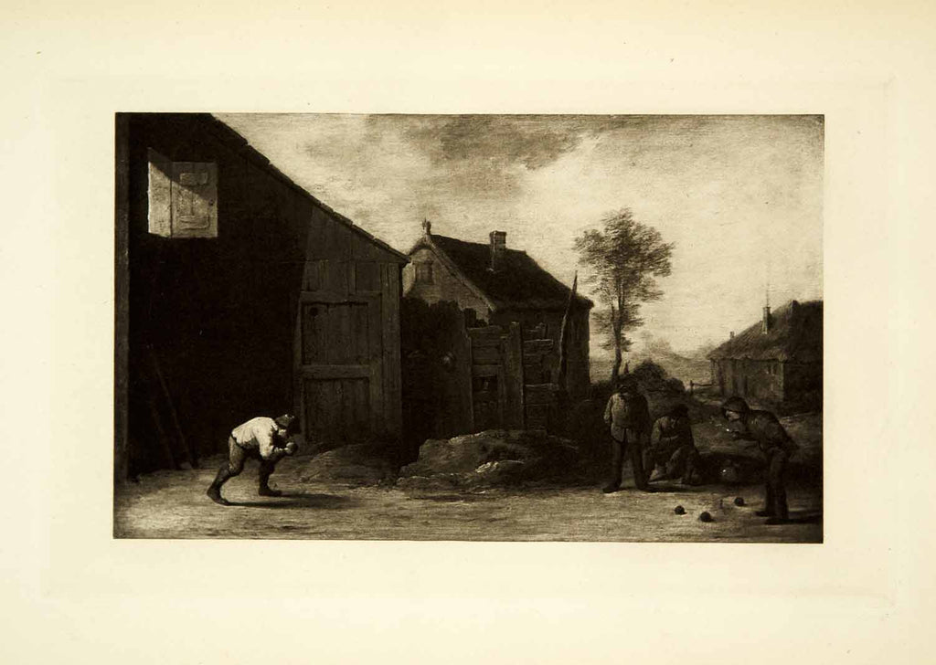 1831 Photogravure Peasants Playing Bowls Sport Village David Teniers Game XANA6