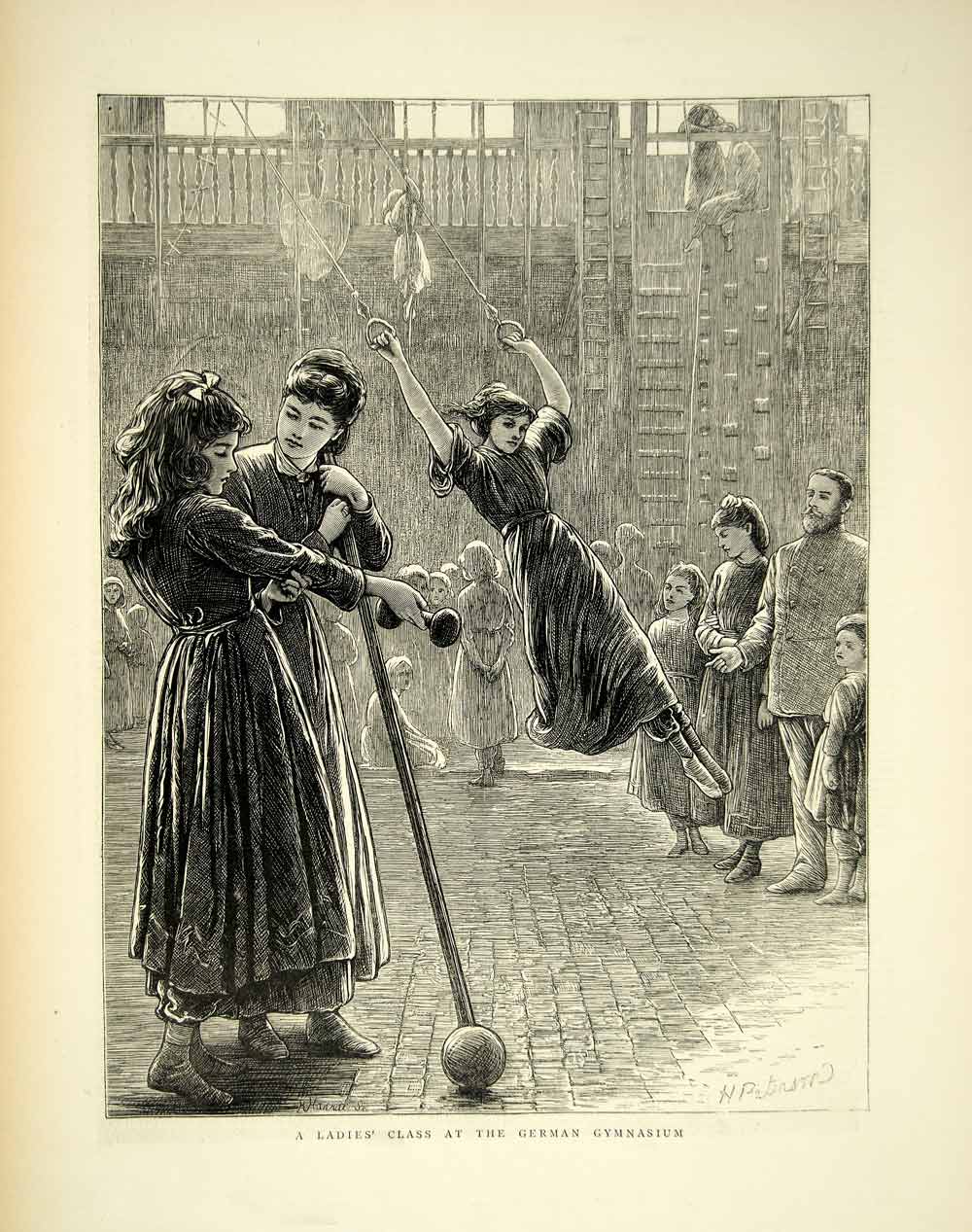 1872 Wood Engraving H Paterson Art Ladies Gymnasium Germany Victorian YTG3