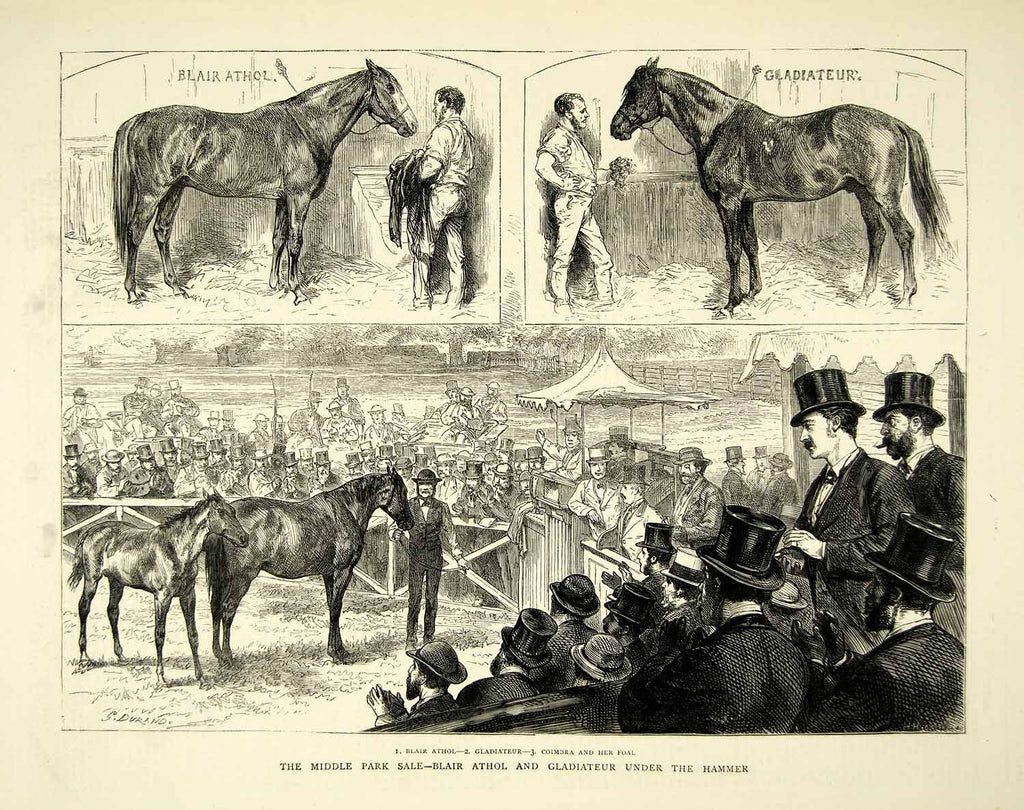 1872 Wood Engraving G Durand Art Middle Park Horse Auction Greenwich London YTG3