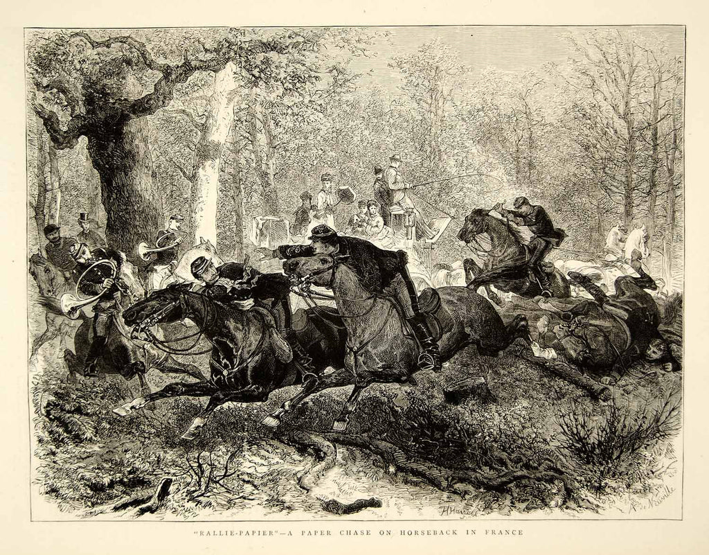 1873 Wood Engraving Alphonse de Neuville Art Rallie-Papier Horse Equestrian YTG6