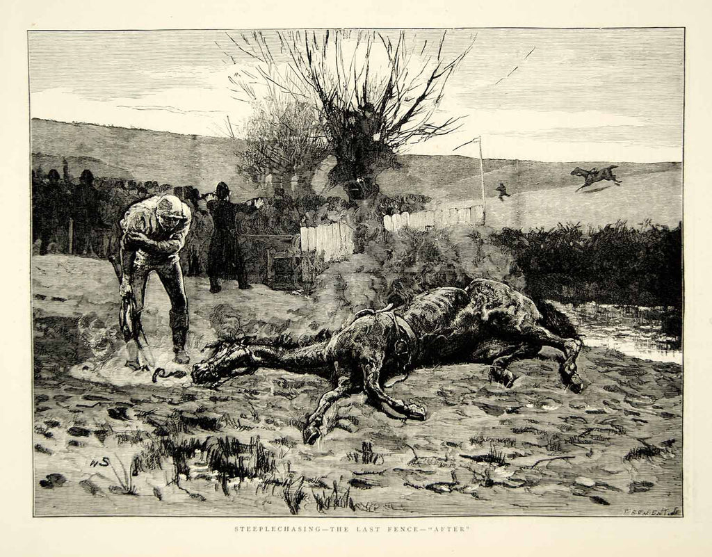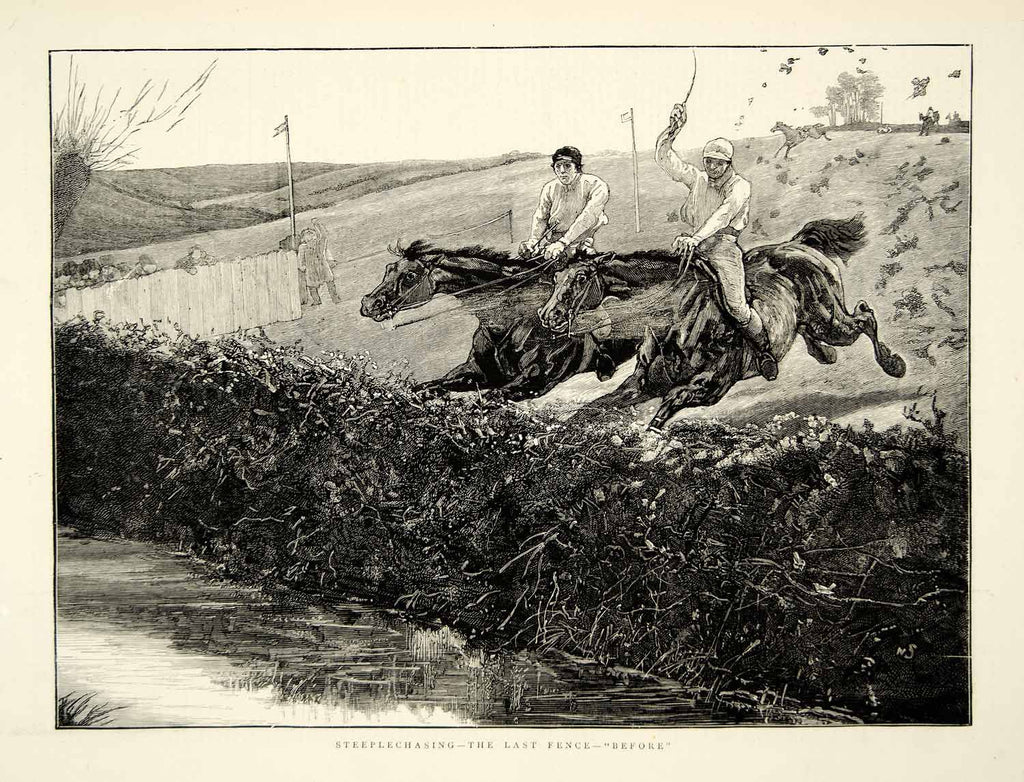 1874 Wood Engraving Art Steeplechase Horse Equestrian Race Sports Jockey YTG8