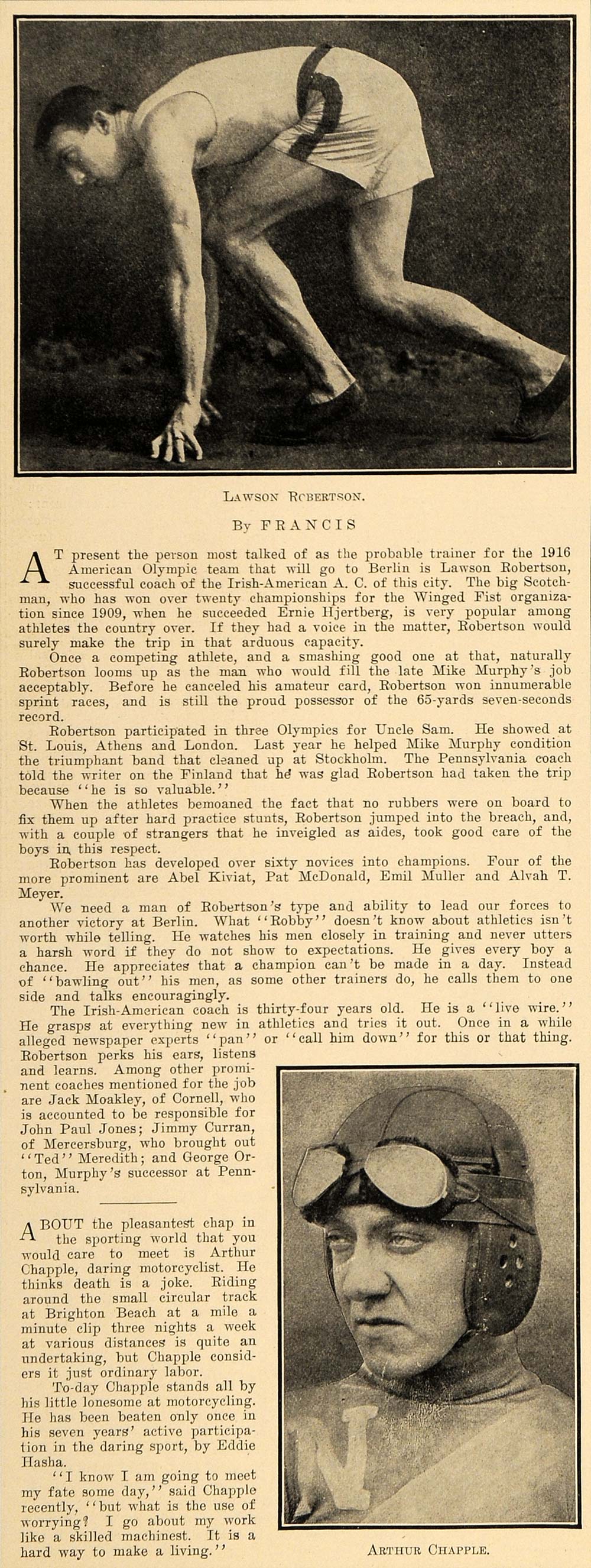 1913 Print Olympic Athlete Lawson Robertson A. Chapple ORIGINAL HISTORIC SEM1