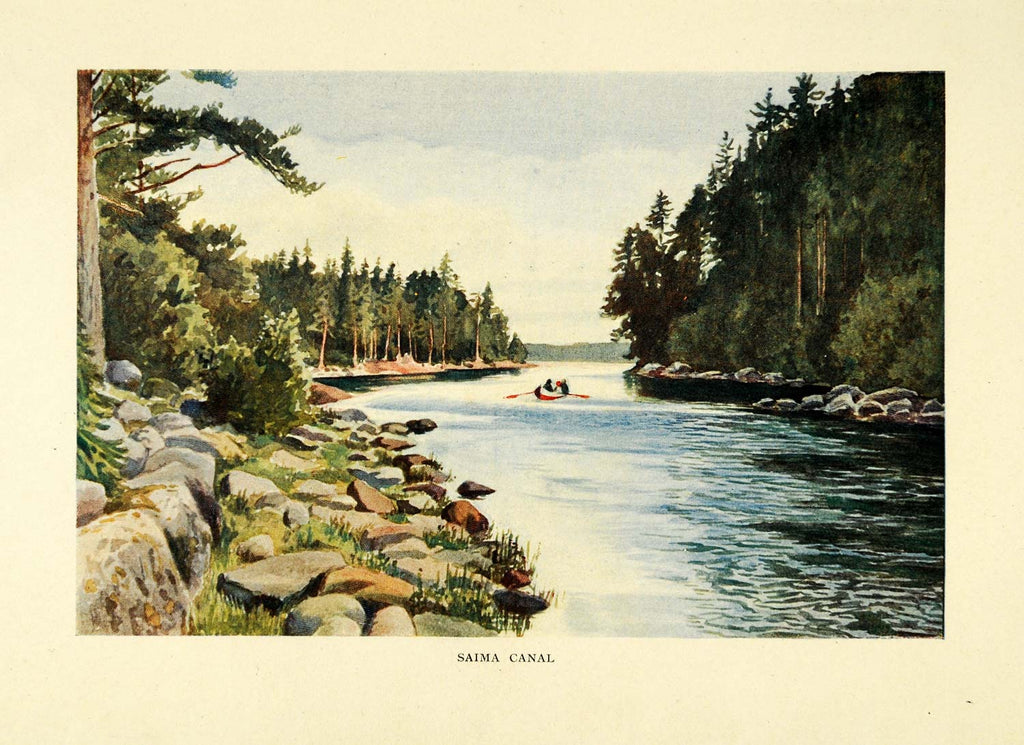1908 Print Saimaa Canal Gulf FInland Vyborg Russia Landscape Canoe Hobby XGE8
