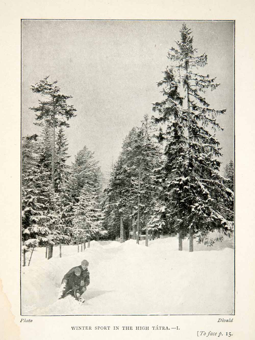 1909 Print Tatra Mountains Winter Sport Toboggan Sledding Father Son Snow XGLB2