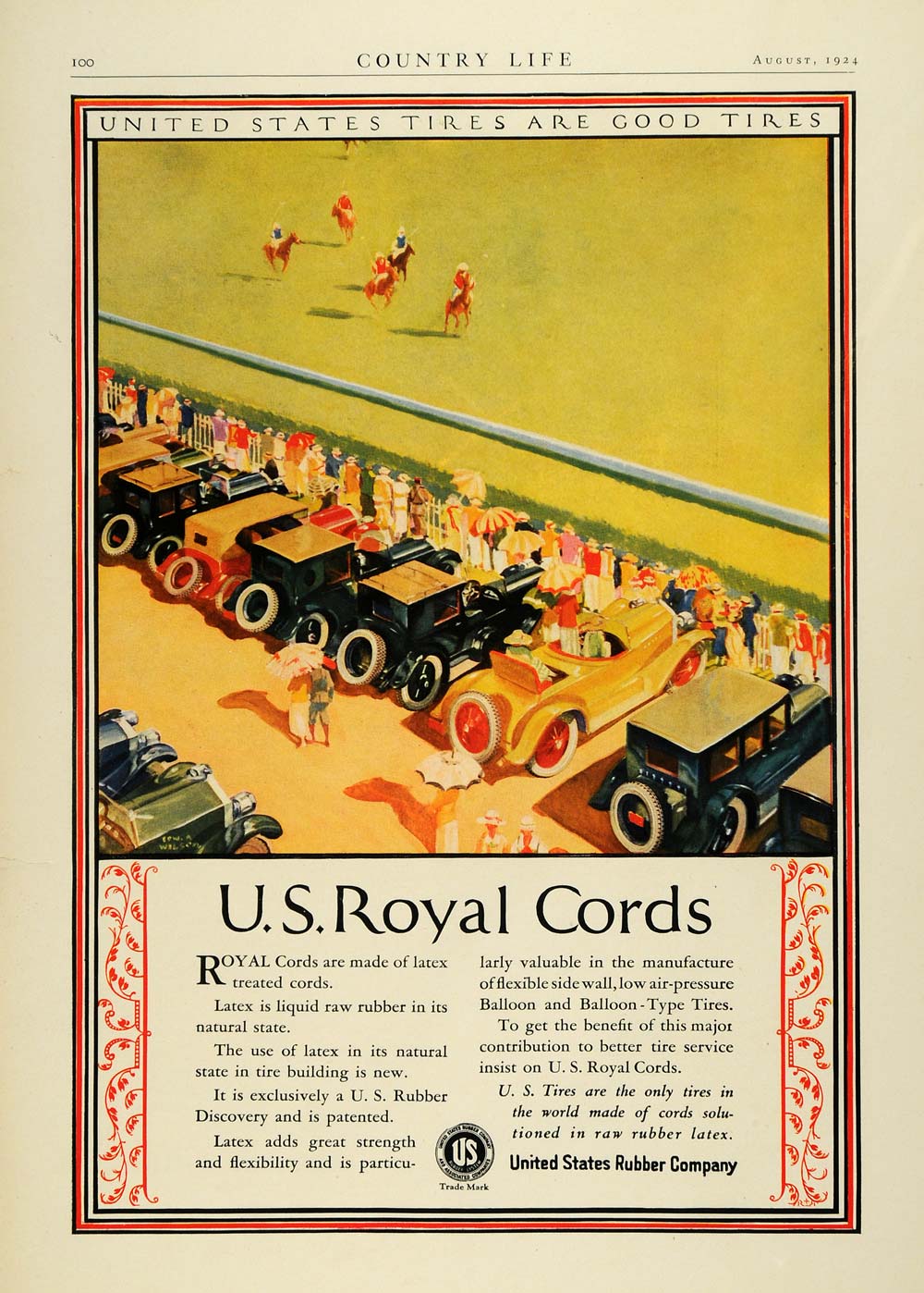 1924 Ad United States Rubber Royal Cord Tires Antique Cars Horse Polo COL3
